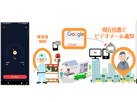 機械災害などを未然に防ぐ安全対策等の回転灯や警報音装置は、危険回避の注意喚などから数多く設置されており、この異常音を検知し、安全対策責任者等に自動電話通報や、検知画像・位置情報をメール通知するサービスです。